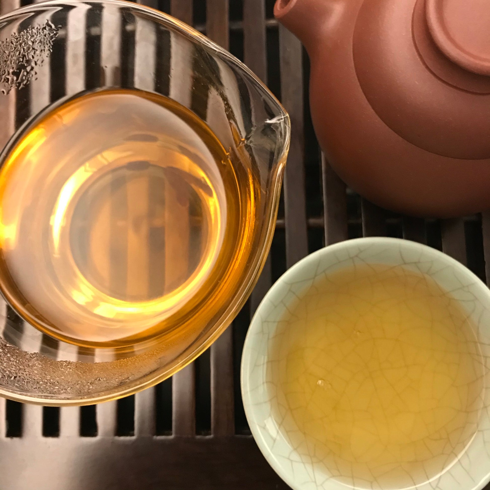 A very distinct impression of dark baking cocoa alongside fresh hay, sprouts and citrus rind. Dried tropical fruit and fresh hay on the nose and in the empty cup. This is a beautifully balanced tea with no harsh notes or uncomfortable edges. Soup is only of medium thickness which is fairly typical for Kunlu Shan tea, but exceedingly smooth and lubricating.