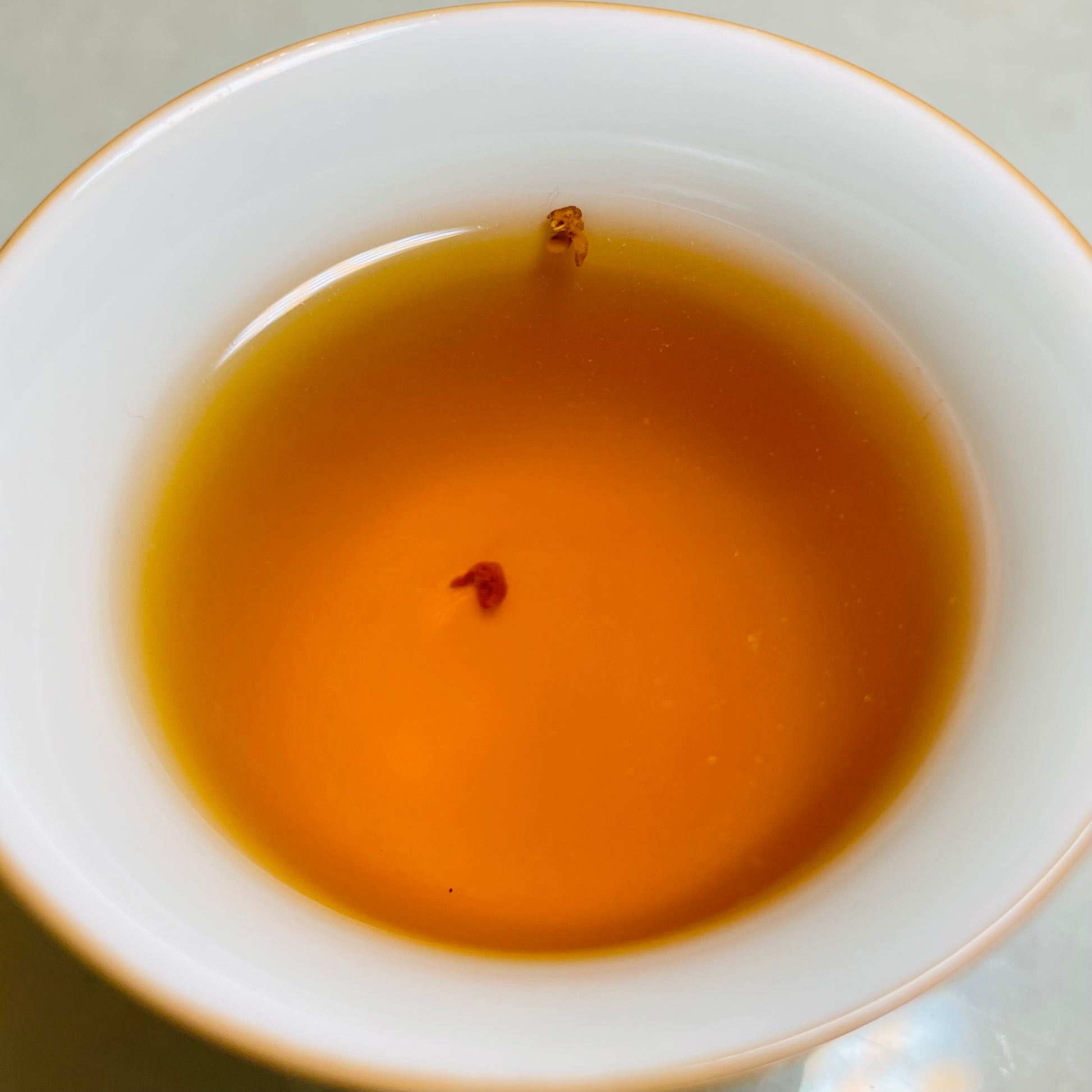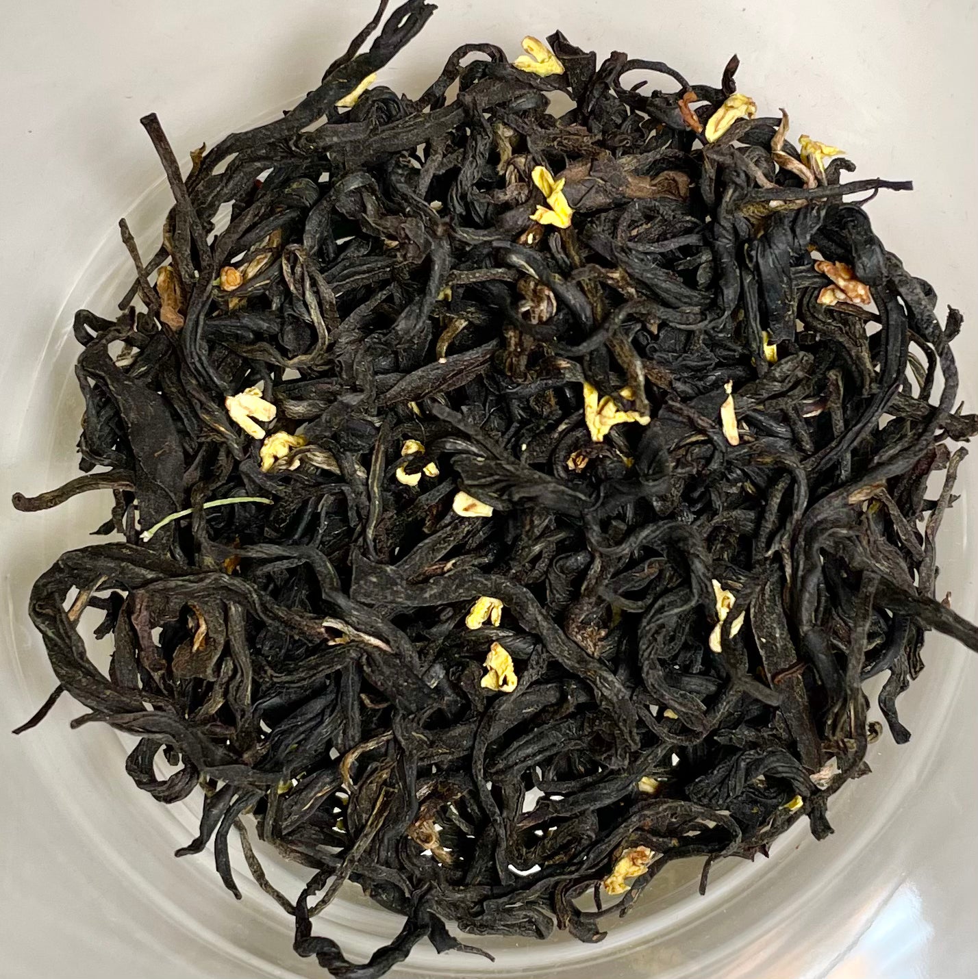 A delicate Jiu Qu Hong Mei Black Tea from the Hangzhou’s West Lake region, uplifted by a sprinkle of fresh hand-picked Osmanthus (Gui Hua) flowers.