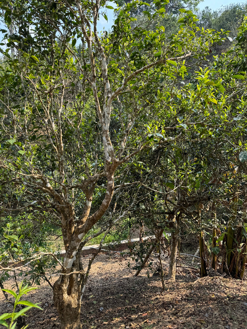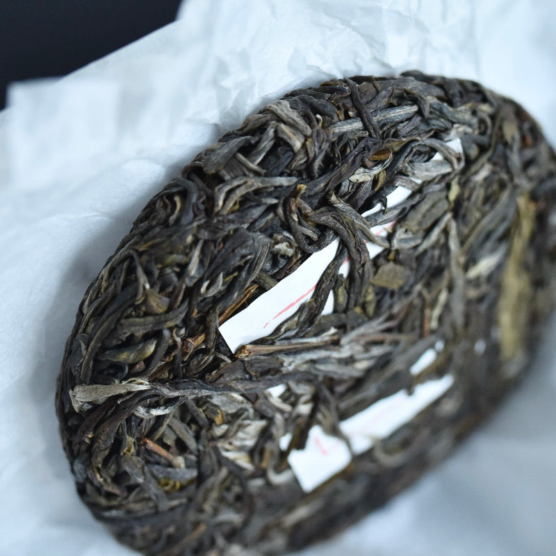 In comparison with the pure gushu pressing from 2023, this tea is more immediate, more direct, giving up the rounded smoothness and dark-green tones of the pure gushu, in exchange for an upfront mineral tartness with a bright sweetness of barley-sugar. Make no mistake, it is still a serious tea, demanding full attention and adequate time.
