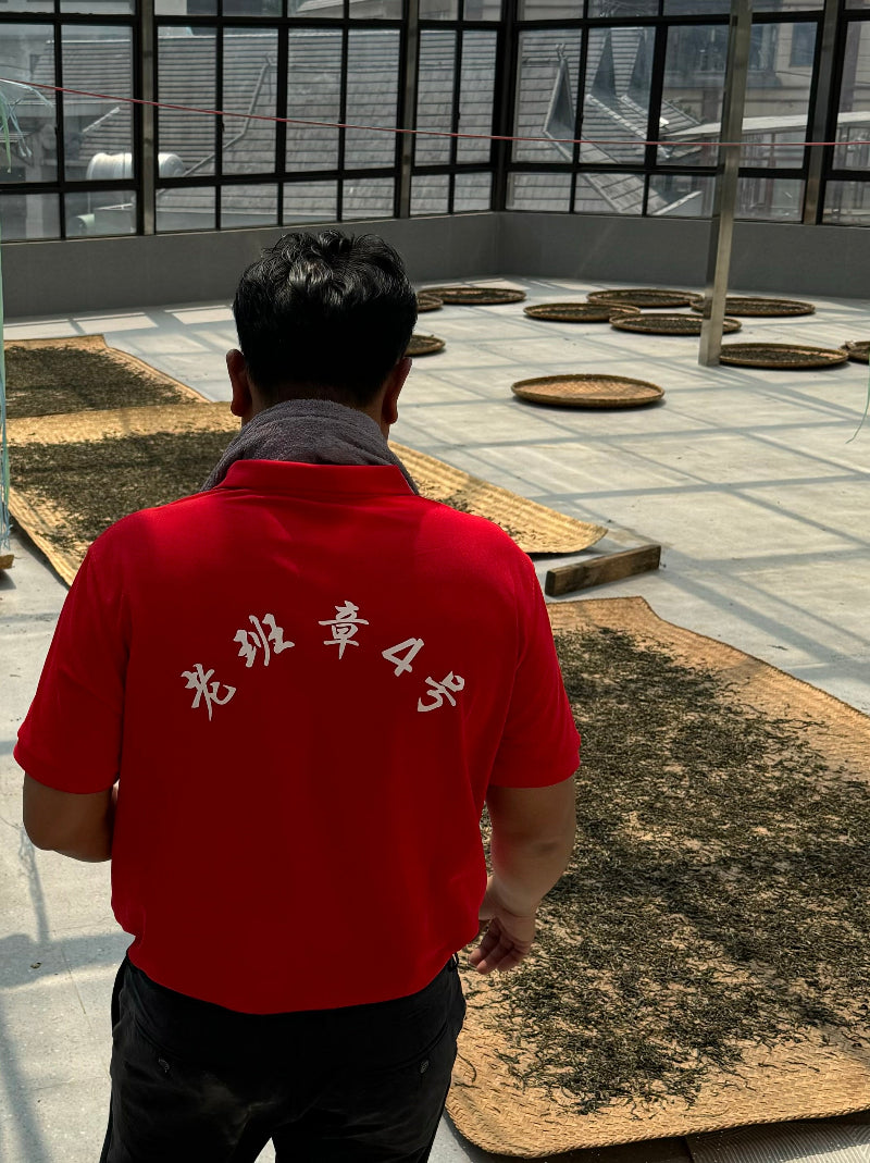 This year, we offer a Lao Ban Zhang that more puerh lovers can experience – 100% pure LBZ material, a strictly monitored early Spring gushu mixed-picking (medium, big trees and a gushu proportion of ~30%), picked on March 29, 2024 from the gardens managed by the Lao Ban Zhang #4 family (the number designating the family’s “address” in the village). The fresh leaf was then processed by the farmers themselves, under our supervision.