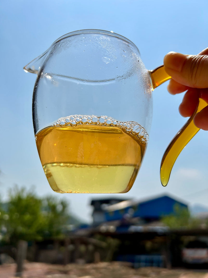 This tea was entirely picked and processed by the Deng family (after sampling countless bags of their maocha, we finally selected a batch from trees owned by Brother Deng’s elder sister). It is a seemingly uncomplicated tea, with an intensity of tangy-sweetness, a shadow of underlying bittersweet orange-rind and an astringency that fades quickly. Despite the rustic processing, the quality of the base material and untainted environment shows through in the purity of flavor and persistent sweetness.