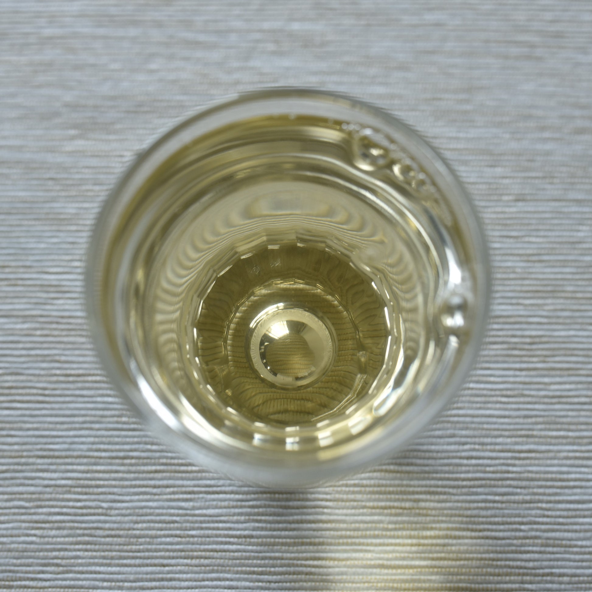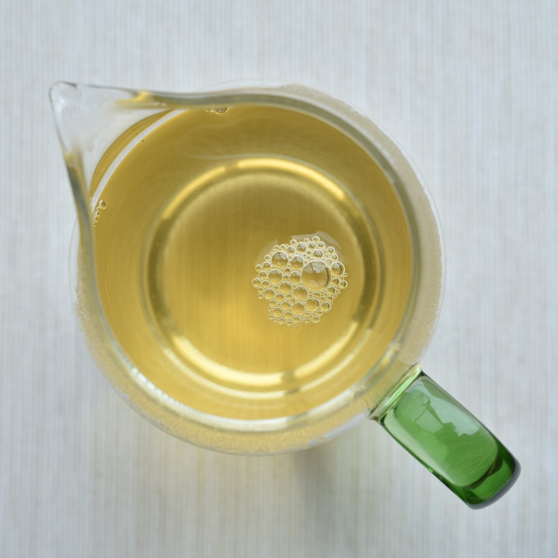 Deep green leaf steeps out rounded flavors of Asian pear puree, leaving an aroma of macerated spiced apples in the bottom of the empty cup. Substantial dark green moss and forest ferns are trodden underfoot, as exotic seed pods brush one's cheeks and nose. The finish is long and mouth-coating. A palpable feeling of 山野气韵 (the spirit and breath of wild mountains, a characteristic of deep forest-type teas). The body feel hits immediately with waves of energy radiating form the core all through the spine and up the neck.