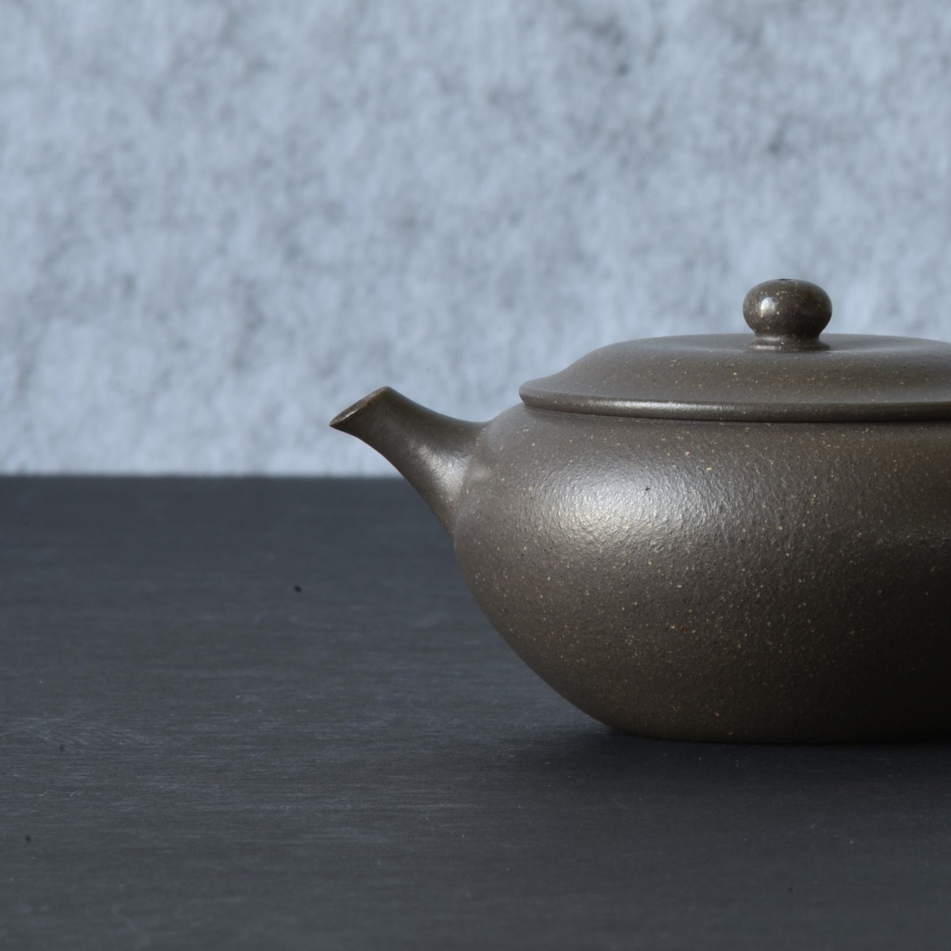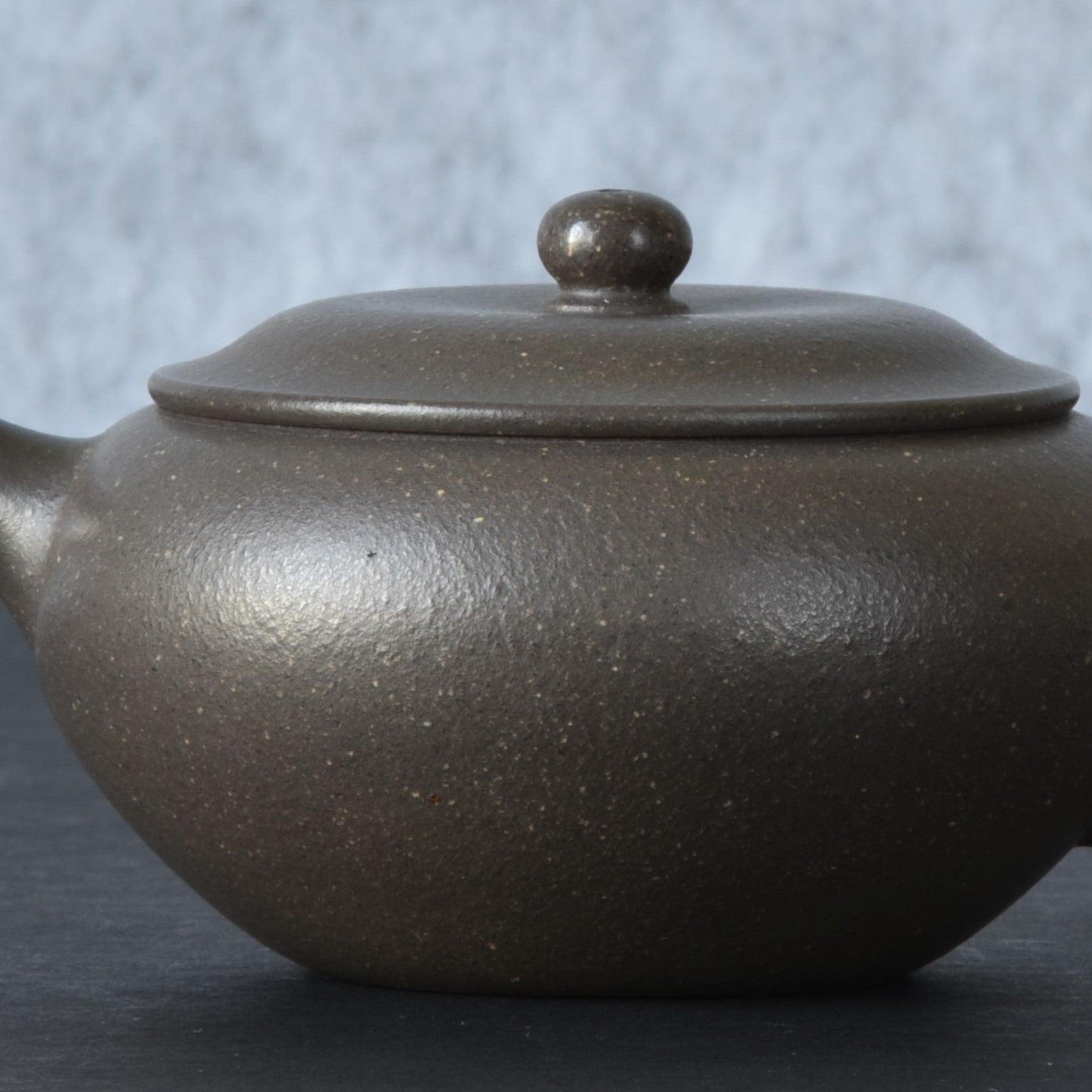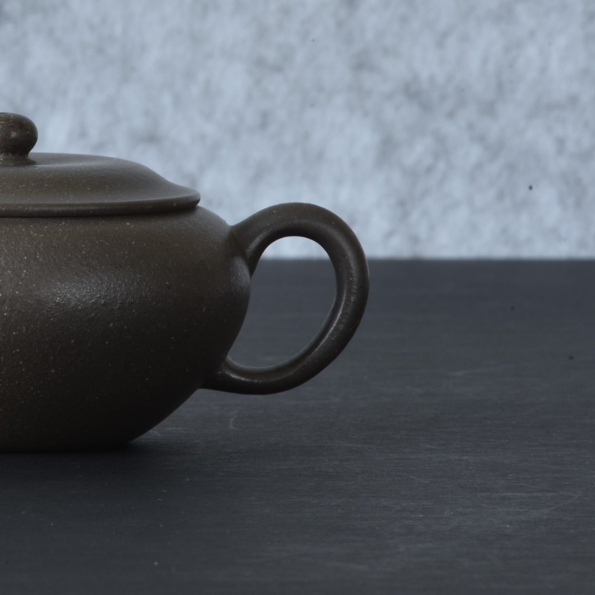 This pot is part of a series crafted in a unique Zini clay called "Qian Xi" or "Millenium" Zini, named after the location where it was secretly mined. This special zini clay is especially prized among artists and collectors in recent years for its tolerance to firing at very high temperatures, which gives a beautiful luster and ability to develop an exceptional patina. The color is remarkably unique and can be fully appreciated in direct sunlight, where an elusive shimmer of faint pink grains can be discerned running through the purple-grey. The raw clay has been painstakingly aged and tempered over the past few years by the artist, yielding a superb granularity of texture which you can see in close-up shots. Despite its grey overtone (a result of the unique ore composition as well as the high firing temp), this clay is classified as a true zini, not to be mistaken for duanni.