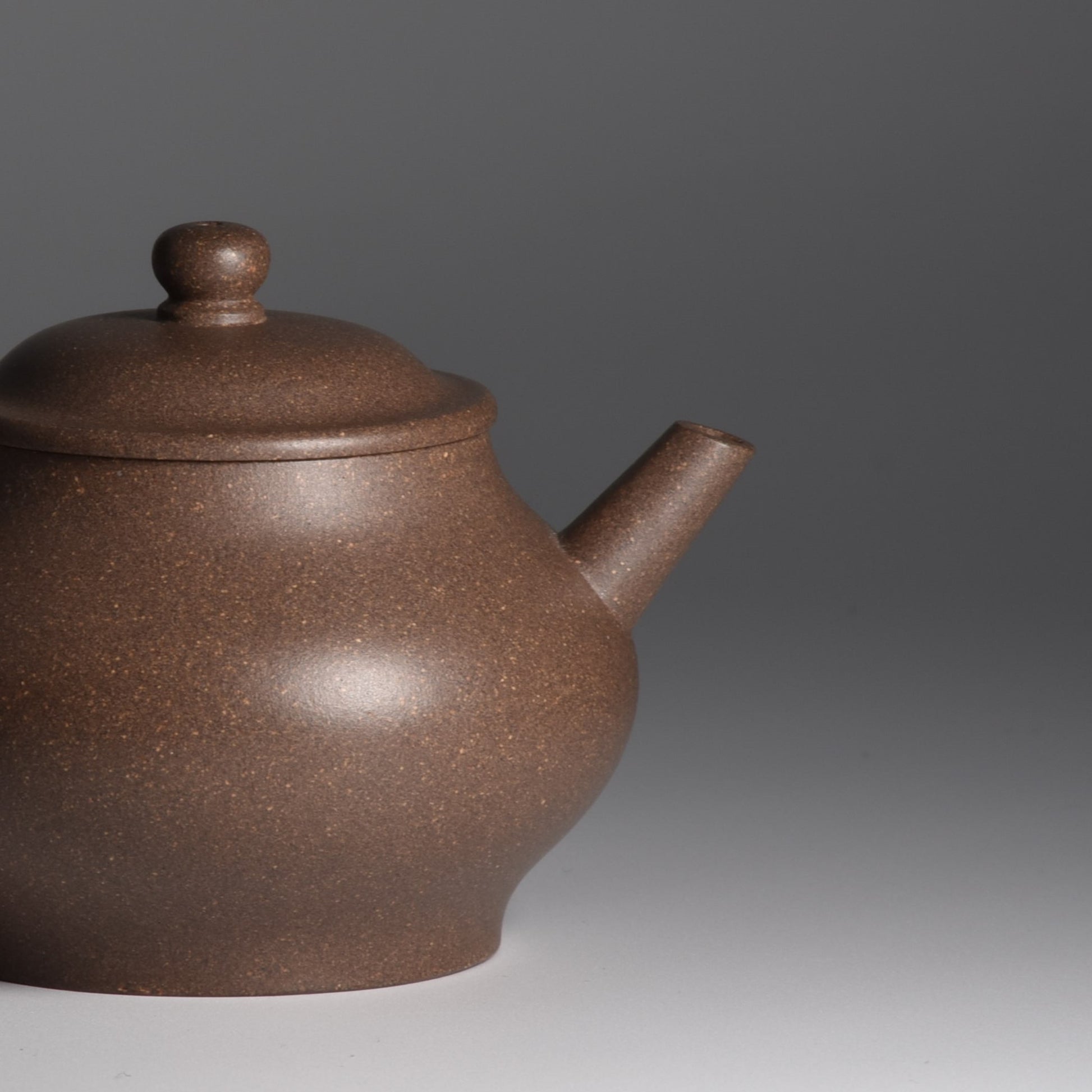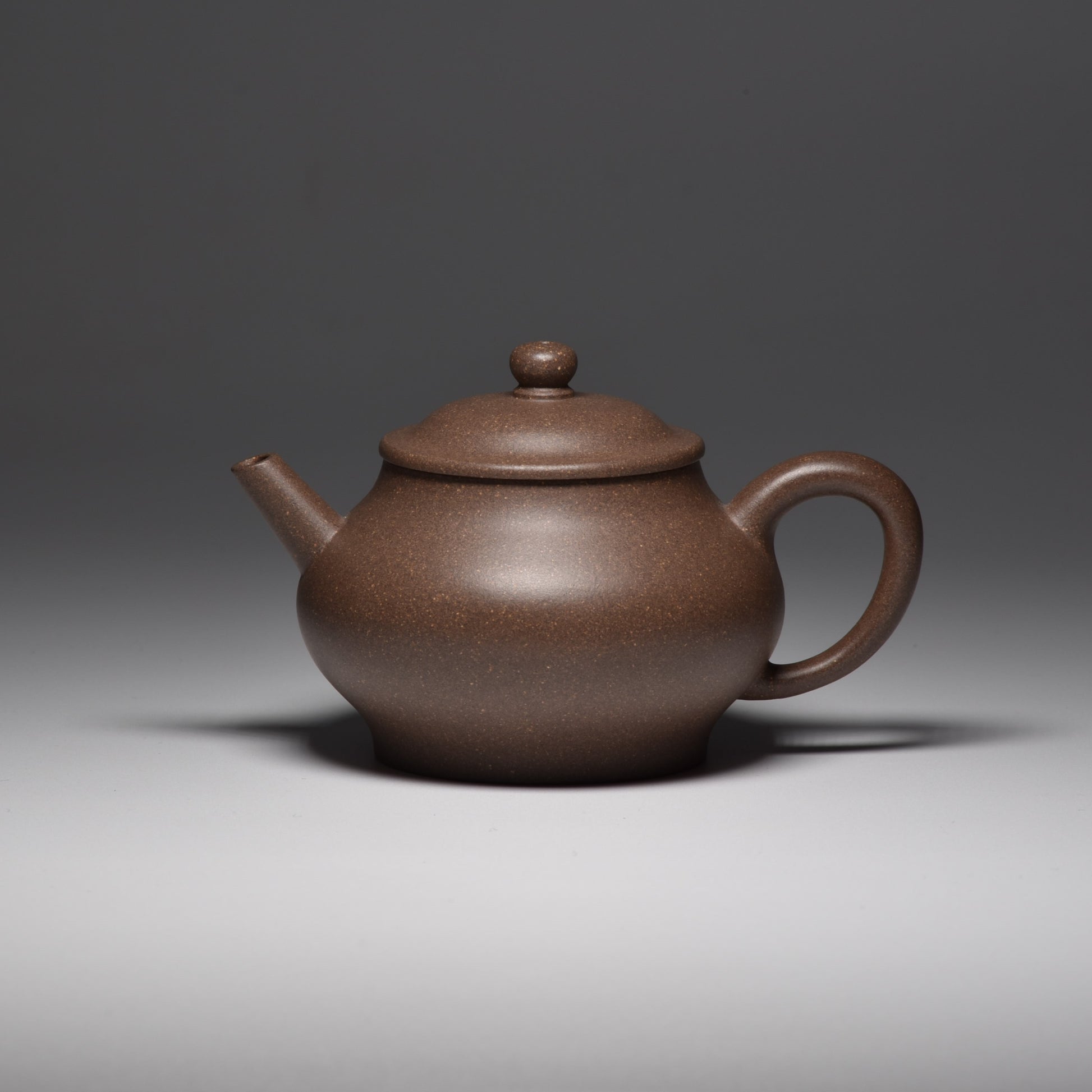 Master Li Qiang is known for his superb technical expertise in clay handling and finishing, with particular expertise in various Duanni and Jiangponi, rougher clays that in lesser hands often look "rustic" and unfinished (wabi-sabi is not a character valued in traditional zisha collecting). His pieces, such as this one, are refined and worthy of a scholar's studio, in the traditional Chinese sense. The "skin" of the clay is lustrous and silken. Despite the small size and delicacy of the spout, the pour is quick and strong, thanks to the ball-style filter (which Master Li uses on almost all his creations for this reason).