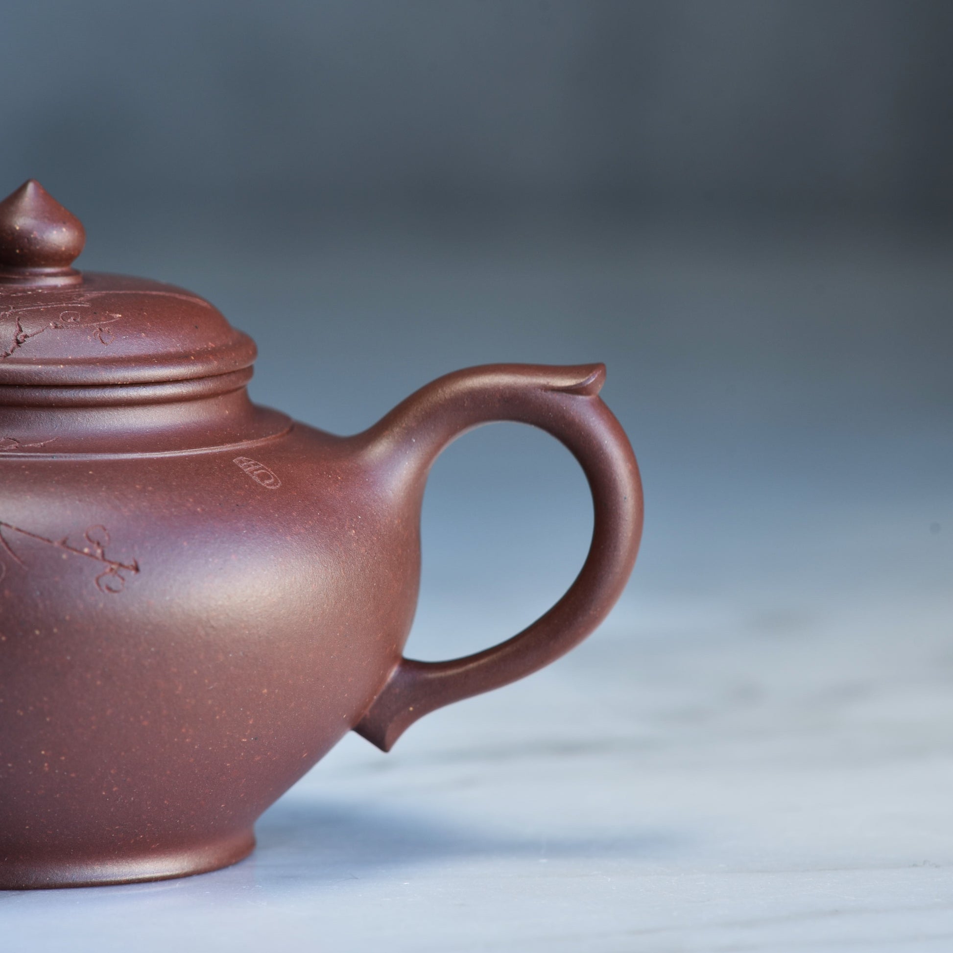 The clay is Di Cao Qing, belongs to the Zi Ni (purple clay) family, but is a special grade that requires high firing temperatures. Not all Di Cao Qing is equal, only the top grade is able to thrive through high firing. It will season quickly and beautifully with normal use.